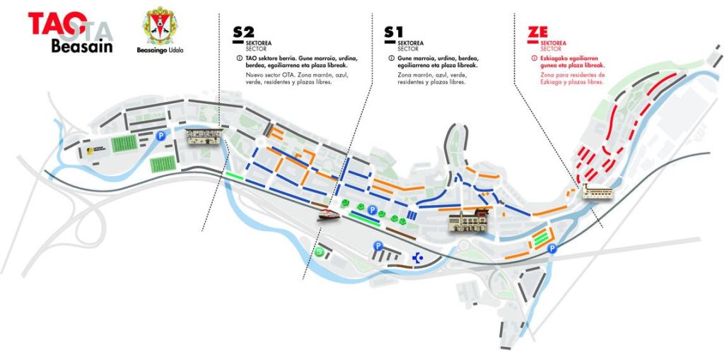 La zona azul, verde, marrón, naranja y roja en Beasain (Guipúzcoa)