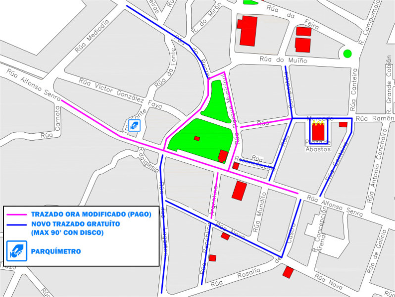 - Rúa do Mercado, no tramo desde a intersección coa rúa Parque municipal até a intersección coa rúa Compostela.