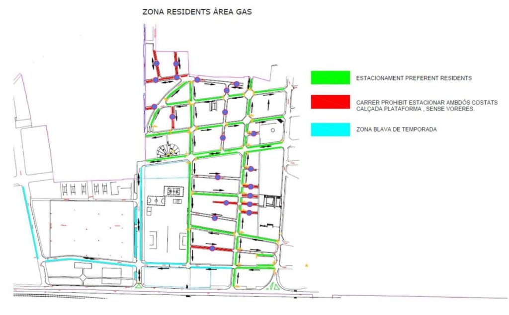 - Zona azul/blava de temporada (rotación). Son plazas de aparcamiento de zona azul que solo funcionan durante la «temporada de verano» (del 15 de junio al 15 de septiembre). Están situadas en los barrios de Can Pou-Camp de Mar y de la zona del Palmar.