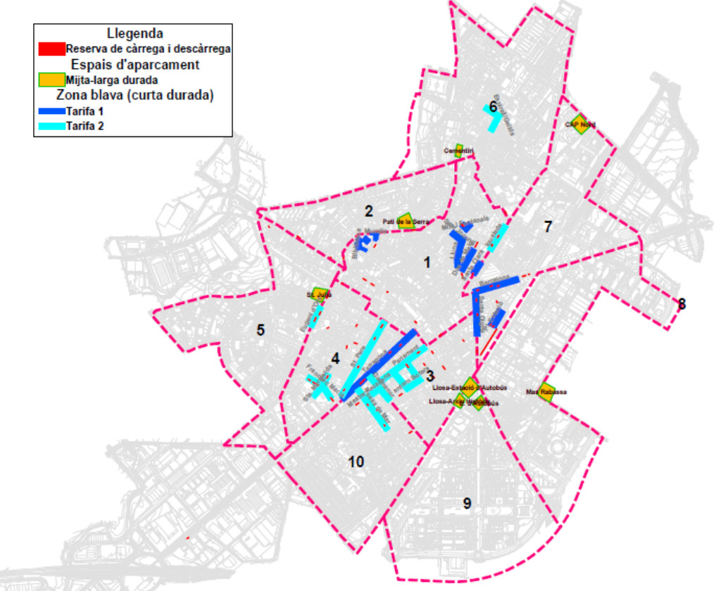 La zona azul y naranja en Vilafranca del Penedès (Barcelona)